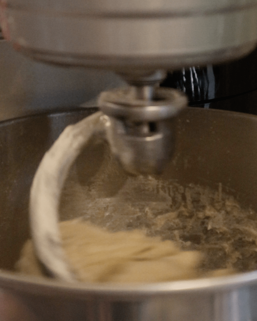 3. If the dough is too sticky and isn’t pulling away from the sides of the bowl, add in an extra ⅛ cup flour while it is mixing.
