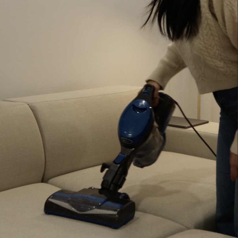 The couch is really easy to clean. I run the vacuum on it and stains get spot treated with a handy-dandy Tide-to-go pen.