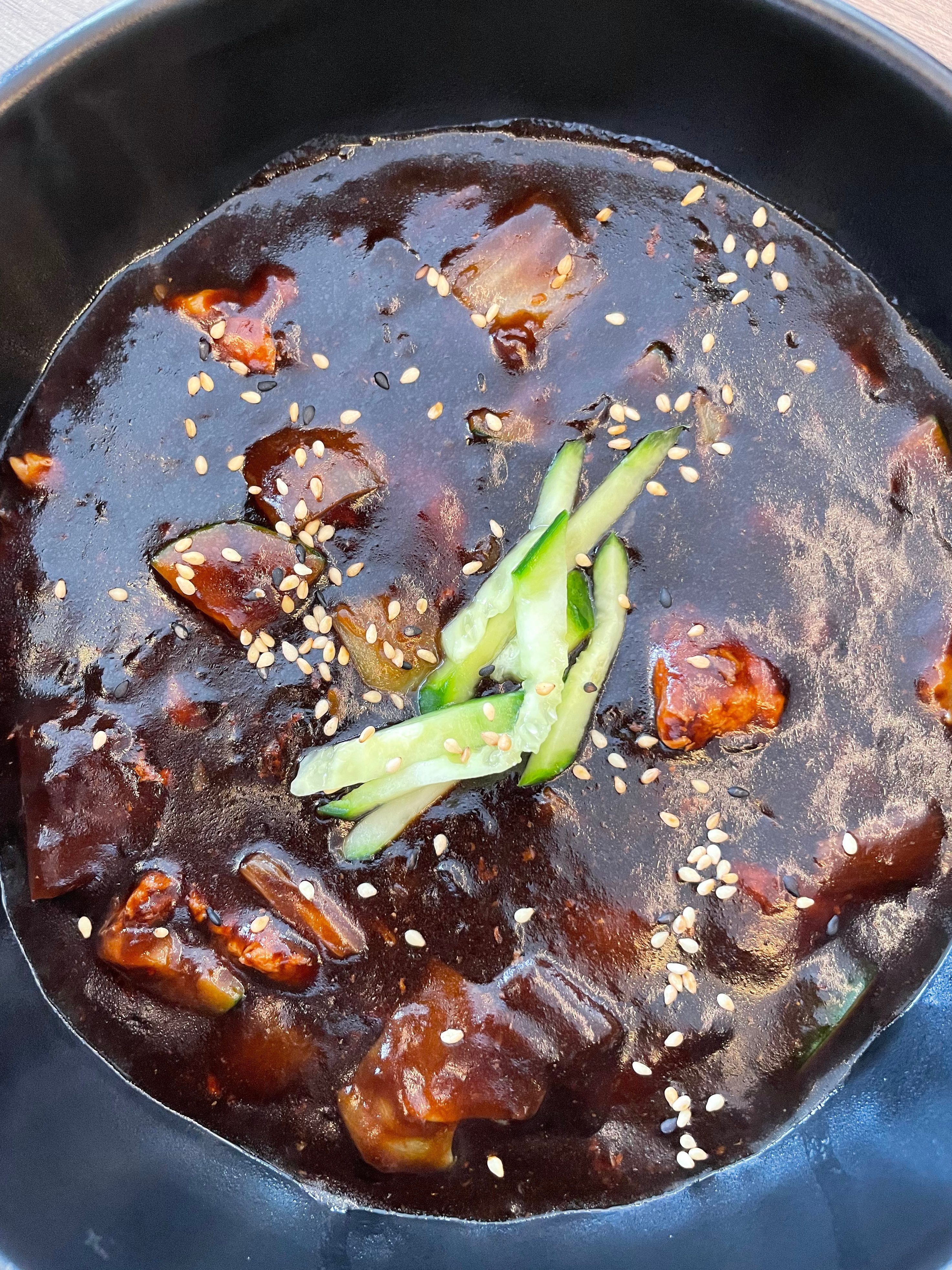 This was hands down the best jjajangmyeon I’ve ever had. The noodles were perfectly cooked, and the thick black bean sauce and pork were so rich and flavourful.