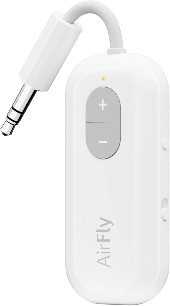 This adapter plugs into the airplane screen and lets you connect your wireless earbuds or headphones, so you can watch your movies and shows no problem.